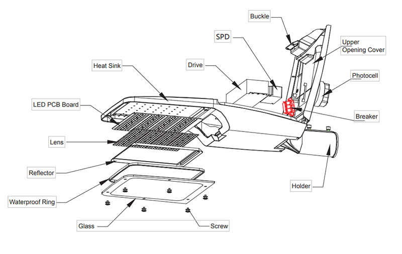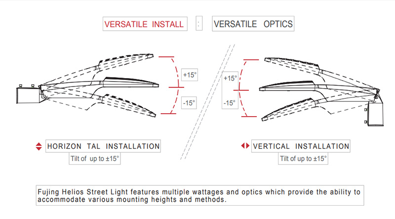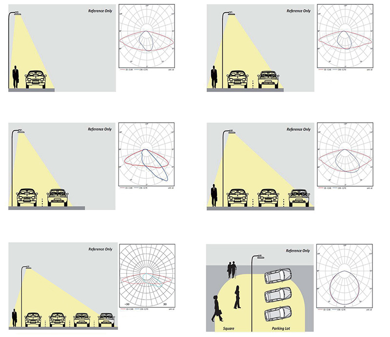 - Լույսի բաշխման տեսակը՝ Ⅰ/Ⅱ/Ⅲ/Ⅳ/Ⅴ, կարող է բավարարել ճանապարհային լուսավորության տարբեր պահանջները։